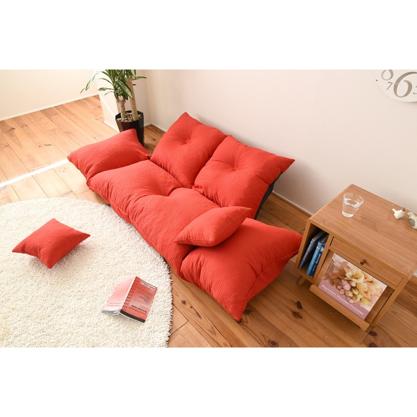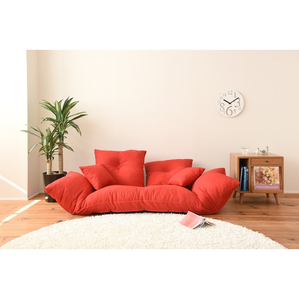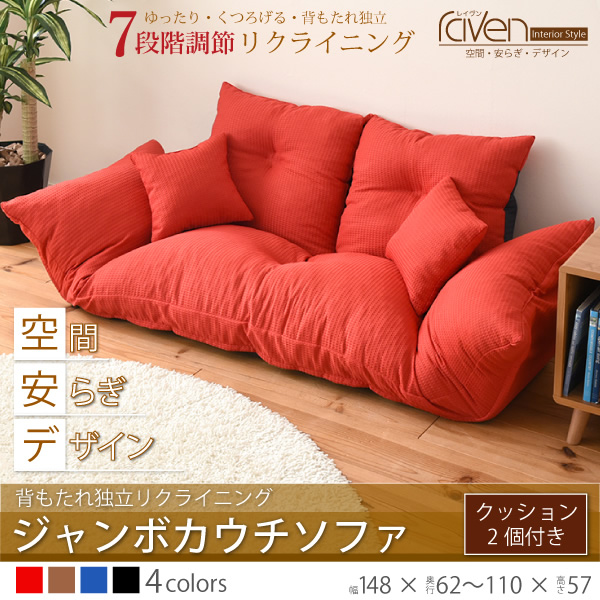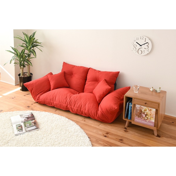 ソファ 背もたれダブルリクライニングカウチ ジャンボ カウチソファベッド 2人掛け リクライニング ロータイプ 分割 クッション付 レッド