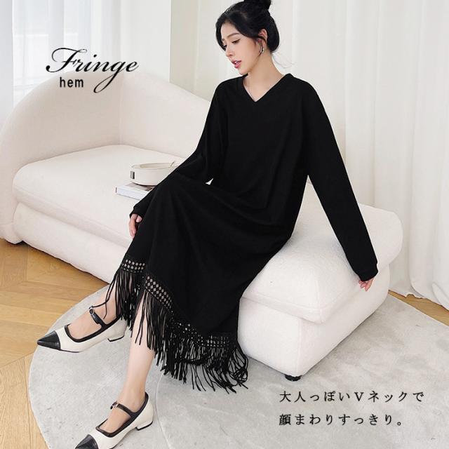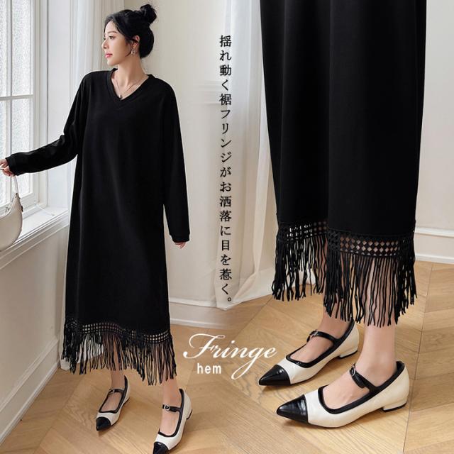| 商品名 | 裾フリンジリブ風ワンピース |