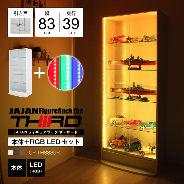 [本体 + LED(RGB)セット] コレクションラック ワイド ハイタイプ 引き戸 本体 幅83cm 奥行39cm 高さ180cm フィギュアラック・ザ・サード JAJAN CR-TH8339R