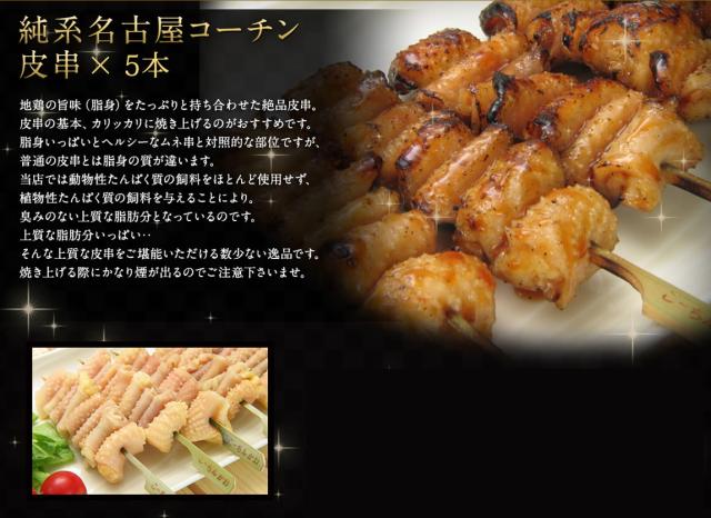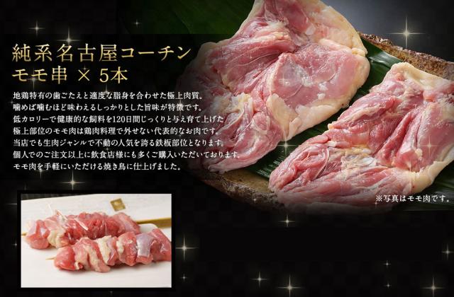 | 正肉・モモ・ムネ・かわ串 | 純系名古屋コーチン鶏肉(モモ・ムネ・かわ) |