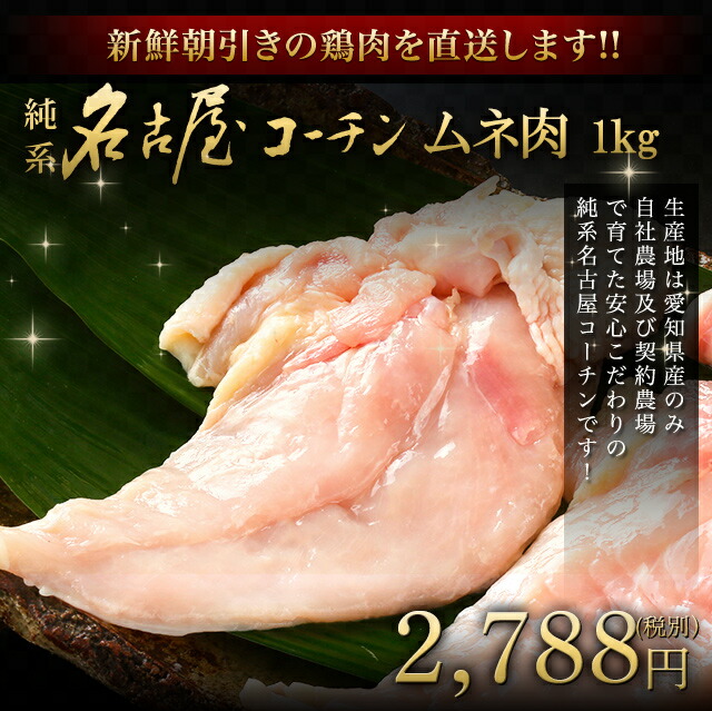 純系 名古屋コーチン ムネ肉 1kg 朝引き 国産 高級 地鶏 鶏肉 生肉 冷蔵 鶏むね肉 極上 プロテイン 筋トレ 減量期 高たんぱく
