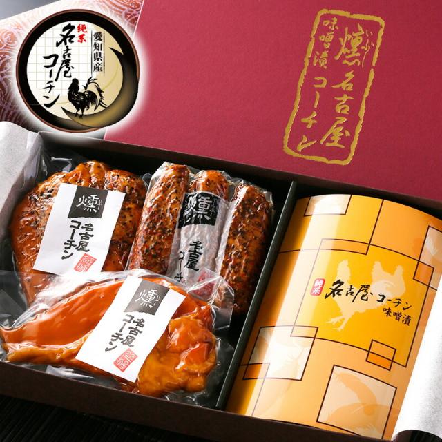 お歳暮 御歳暮 【TV紹介されました ♪ 】 純系 名古屋コーチン 4種 燻製 味噌漬け セット ギフト おつまみ 国産 高級 地鶏 鶏肉 食べ物 ハム ソーセージ お取り寄せグルメ 詰め合わせ 熨斗 手提げ袋 50代 60代 70代 結婚 出産 内祝い 誕生日 お祝い プレゼント お礼 39M