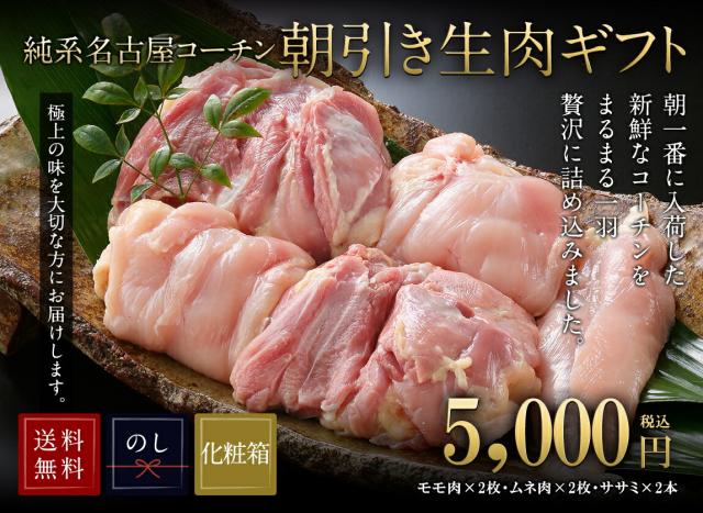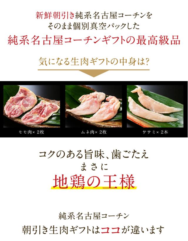お年賀 寒中お見舞い 純系 名古屋コーチン 朝引き 1羽セット 生肉 ギフト ( モモ 2枚 / ムネ 2枚 / ササミ 2本 ) 各2枚 化粧箱入り 真空パック お肉 お取り寄せ グルメ 国産 高級 地鶏 鶏肉 冷蔵 冷凍 誕生日 お祝い 結婚 出産 内祝い お礼