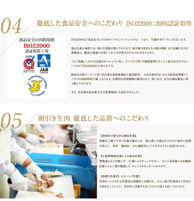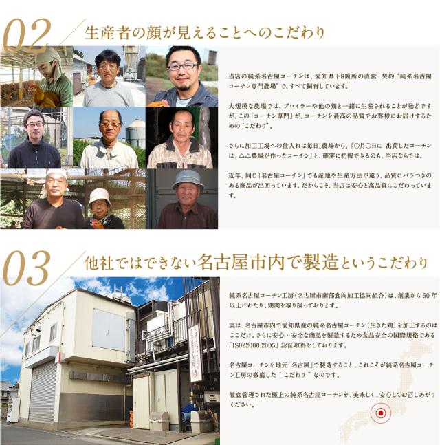 | 原材料 | 純系名古屋コーチン鶏肉 もも・むね・ささみ |