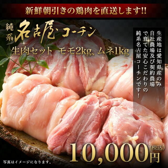 純系 名古屋コーチン 朝引き 生肉 セット 計3kg ( モモ 2kg、ムネ 1kg ) メガ盛り まとめ買い 日本 国産 高級 地鶏 鶏肉 生肉 業務用 大容量 お正月 内祝い 内祝