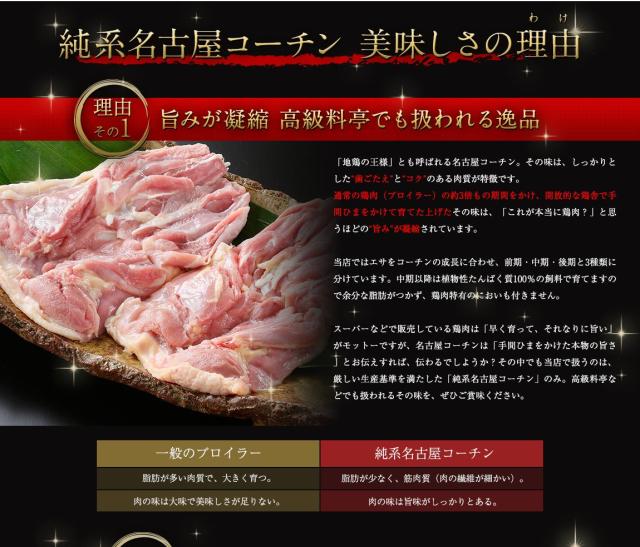 | 原材料 | 純系名古屋コーチン鶏肉 |