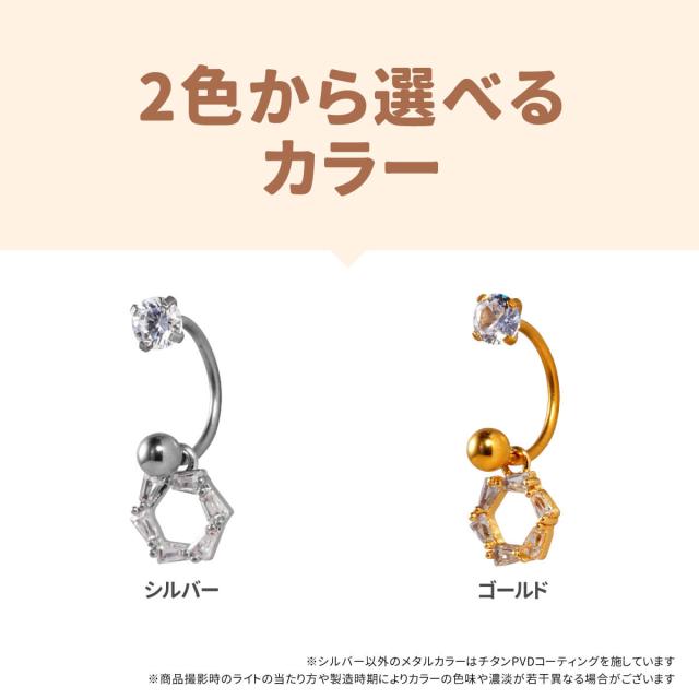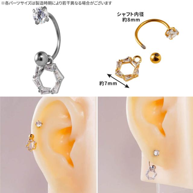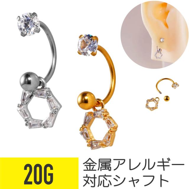 ヘキサゴン ジュエル チャーム サーキュラーバーベル 20G サージカルステンレス ジルコニア ヘリックス 軟骨ピアス ボディピアス 六角形 ビジュー