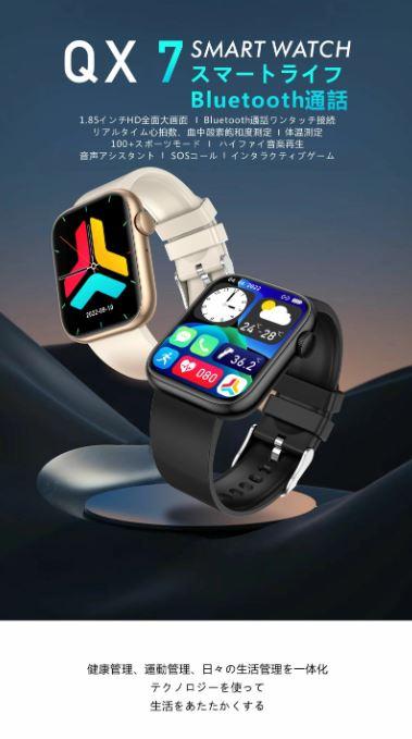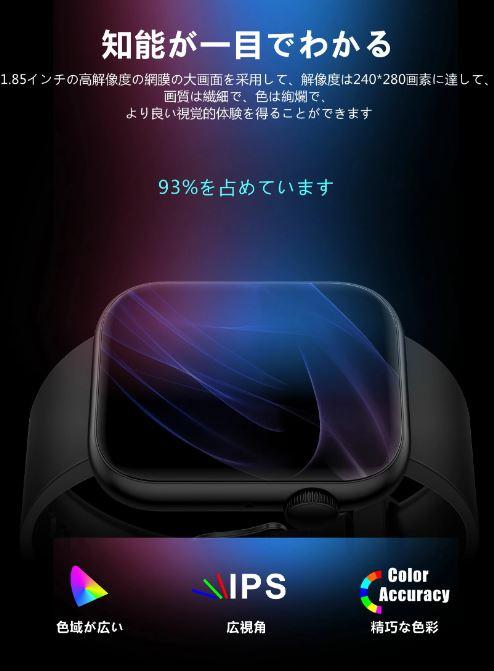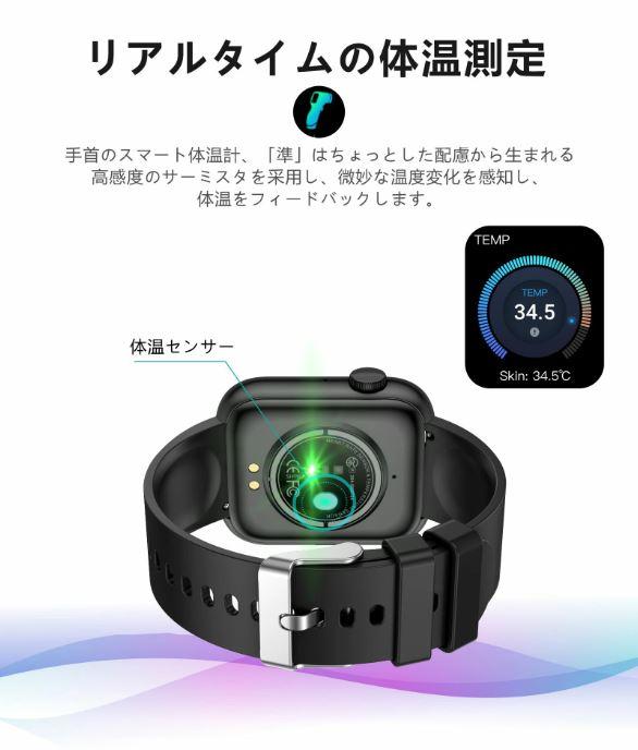 スマートウォッチ 日本語表示 siri対応 体表温測定 着信通知 1.85インチ大画面 活動量計 天気予報 IP67防水 万歩数計 運動量測定 睡眠管理
