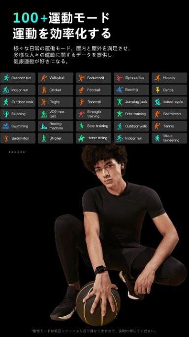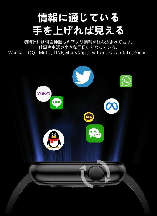 〇Bluetooth通話(発信・着信) スマートウォッチ本体で通話可能 ポケットやかばんからスマートフォンを取り出す必要はもうありません。 〇アプリ通知 Gmail、LNE、KakaoTalk、Wachat、X(Twitter)など100種類以上のアプリが通知可能 〇音声アシスタント対応 〇心拍数/血圧の常時監視 ※日常生活での目安としてであり、医療行為には使用できません。 〇体温(表面温度)のリアルタイム測定(初回のみ5分継続使用後、計測可能) 〇血中酸素飽和濃度の確認 〇屋内・屋外問わず100種類以上の運動モードで運動量の測定が可能 〇文字盤はいつでも好きなものに変更可能(写真などのオリジナルも可能) 〇IP67防水 日常生活や短時間の水没などは問題ありませんが、お風呂やサウナ等は高温の為、積極的な使用は控えてください 〇長持ちバッテリー ・リアルタイム心拍計測モードで最大5日間 ・Bluetooth接続モードで最大7日間 ・Bluetooth非接続なら最大35日間 〇その他 ・ミニゲーム ・SOS発信 ・睡眠記録 ・生理周期計測 ・電卓 ・天気予報 ・パスコードロック ・Hifi音質での音楽再生 ・画面サイズ1.85インチ(画面全体の93%が使用可能) |