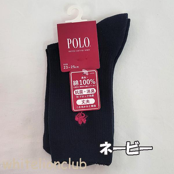 スクールソックスの定番!POLOのワンポイント刺繍ソックスです。両面刺繍で左右どちらでもOK^^表糸は綿100%。抗菌+消臭のWブロック効果。つま先・かかと補強で破れにくく丈夫。かかと90度で履き心地のいい靴下です。何足あってもいいですね♪