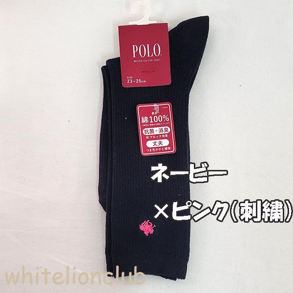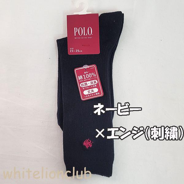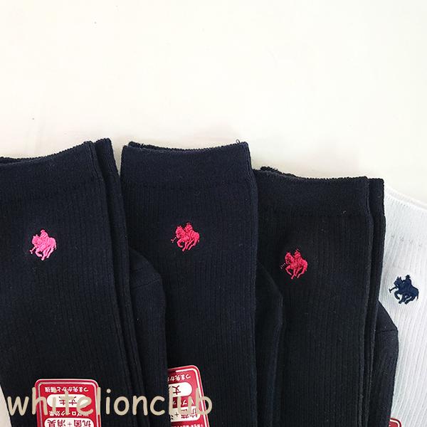 スクールソックスの定番!POLOの26cm丈ワンポイント刺繍ソックスです。両面刺繍で左右どちらでもOK^^表糸は綿100%。抗菌+消臭のWブロック効果。つま先・かかと補強で破れにくく丈夫。かかと90度で履き心地のいい靴下です。何足あってもいいですね♪