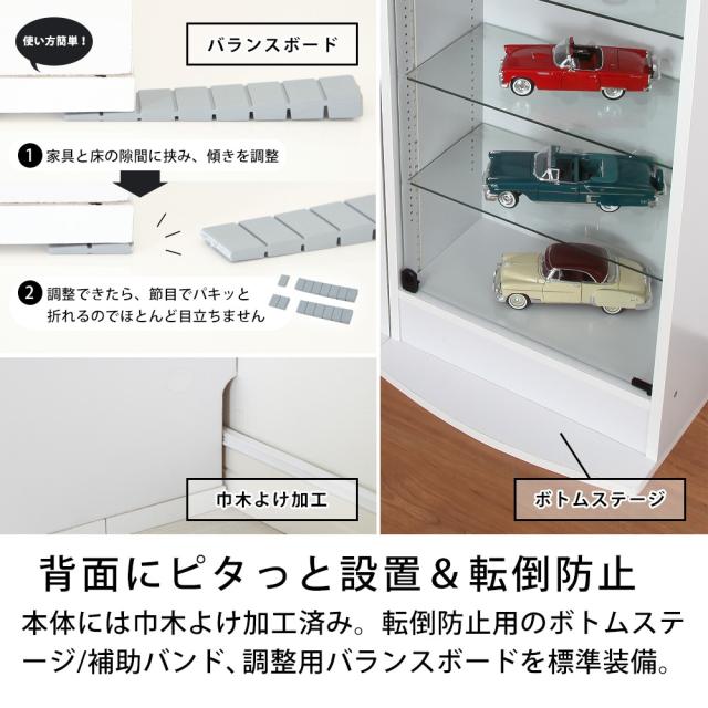 備考 | ガラス棚(6枚)/5mm厚強化ガラス、ロック付ガラス扉(2枚)/5mm厚強化ガラス、バランスボード、転倒防止補助バンドセット |
