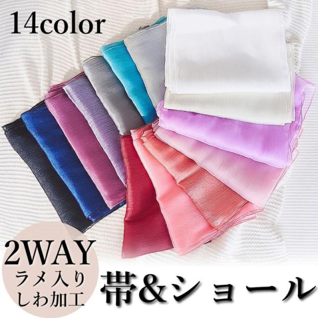 LoveRich ラブリッチ 【14カラー/帯・ショール単品】 2WAY ラメ入り しわ加工 ふんわり 帯 ショール 兵児帯 花魁 着物 浴衣 ドレス [2034]