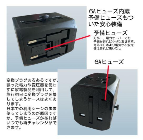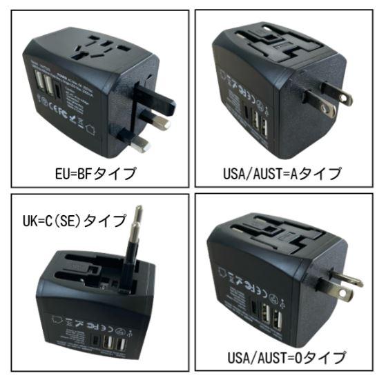 海外変換プラグ USB2+TypeC1 コンセント iphone&Android対応 充電ポート 通電チェック機能 6Aヒューズ 予備ヒューズ付き A型プラグ BF型プラグ O型プラグ SE型 C型プラグ スマートIC