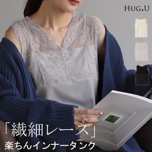 ストレスなし。伸びる レース タンクトップ レディース フラワー ロングタンク シアー タンク トップス ノースリーブ 薄手 Vネック レイヤード インナー ロング 袖なし 透け 肌着 下着 重ね着 無地 ゆったり きれいめ 伸縮性 大きいサイズ 秋 冬 HUG.U 秋新作
