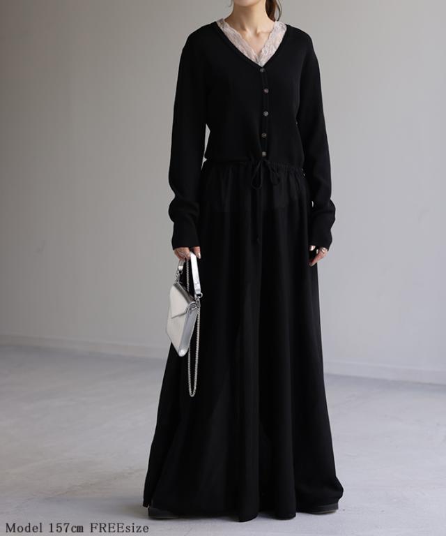 上品な透け感と計算された切替デザインで美しく肌見せ。