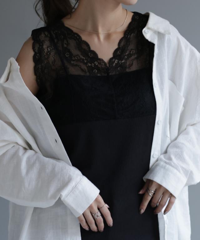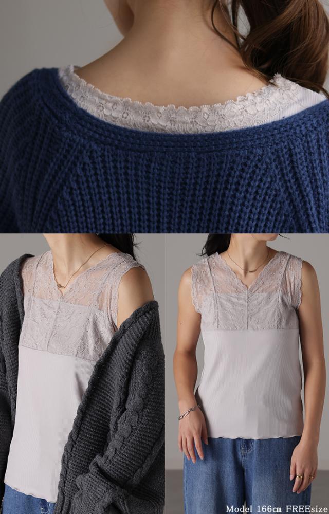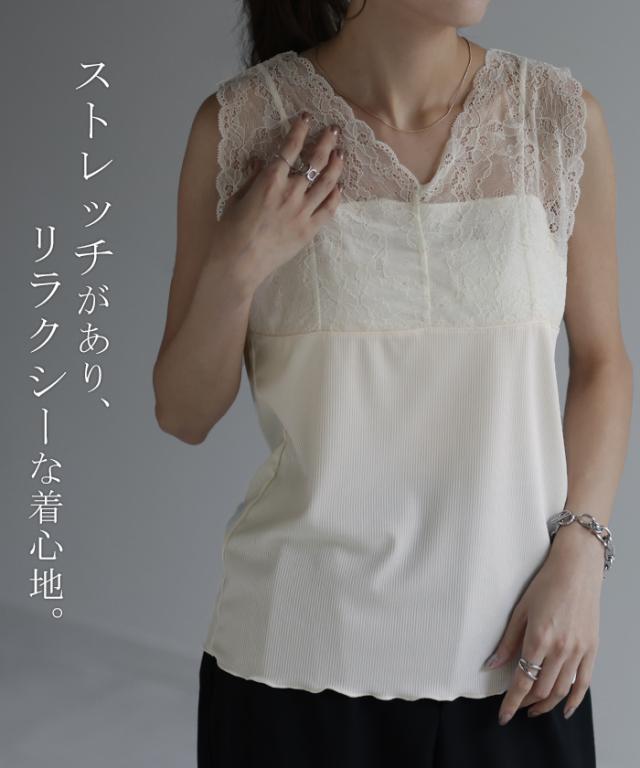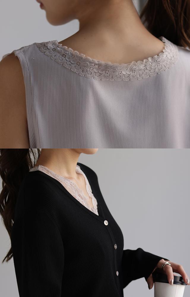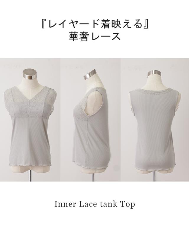 フェミニンな雰囲気が加速するノースリーブのレースインナートップスです。