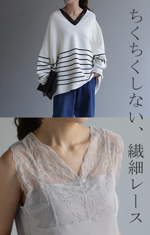 女性ならではのレースを日常に取り入れやすく着回しがきく優秀アイテムです。