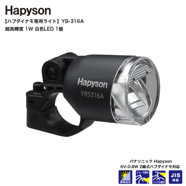 Hapyson ハピソン 自転車用 ハブダイナモライト YB-316A 20lx パナソニック ハンドル フロントフォーク 対応 JIS準拠 常時点灯