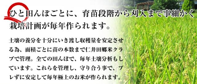 仁井田郷米クラブのお米はきめ細かい栽培計画でその年々により味に変化のない「いつでもおいしい米作り」を実現しています。