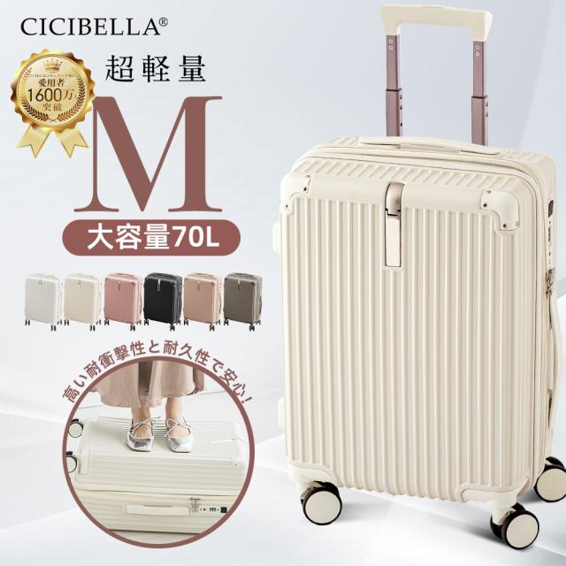 ★超人気新登場★ cicibella スーツケース TYPE-C・USBポート付き キャリーケース Mサイズ 70L 3-7日用 泊まる カップホルダー付き 軽量設計 多機能スーツケース 大容量 GOTOトラベル 国内旅行 送料無料 福袋 旅行