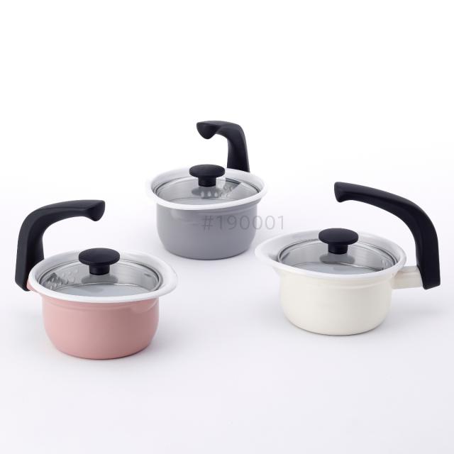 淡いカラーと優しい素材感に癒される、ホーロー製のマルチポットです。煮る・茹でる・炒める・揚げる・和える・沸かすなど、これ一つで様々な調理に活躍します。ちょっとお茶を入れたい時やもう一品欲しい時に便利なサイズで、1人暮らしの方にもおすすめです。