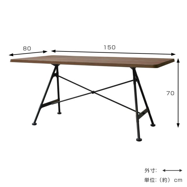 ダイニングテーブル ウォールナット無垢天板 幅150cm ( 開梱設置 天然木 ダイニング テーブル 食卓 長方形 4人掛け スチール脚 異素材 木目 ビンテージ調 ヴィンテージ調 ブラウン )