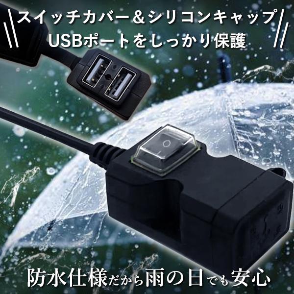 バイク USB充電ポート 電源 取り付け 防水 電源スイッチ付き スマホ充電 バイク用USB USB充電端子 2ポート 後付け (管理S) 送料無料