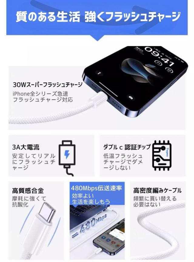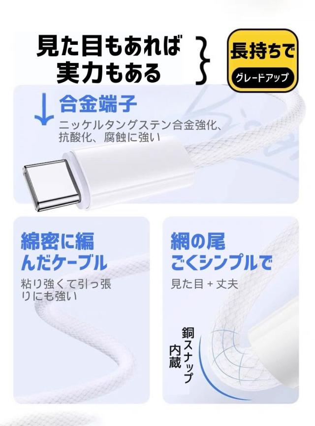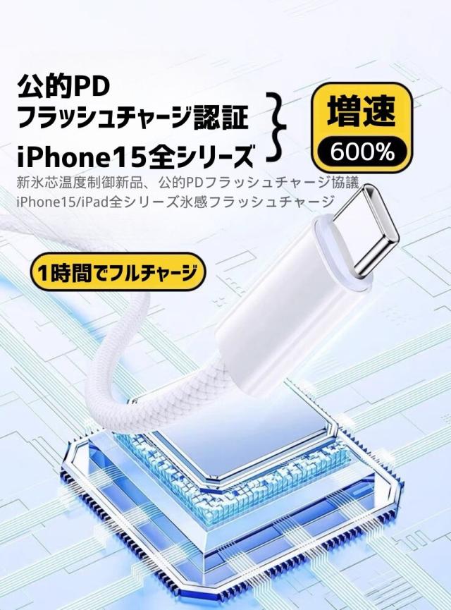 iPhone15 充電ケーブル PD急速充電ケーブルType-C充電ケーブル1m 急速充電 バックアップ充電コード iPad apple アップル 丈夫 急速充電 白 充電線 PD Android iphone15 iphone15pro iphone15pro max iphone15plus