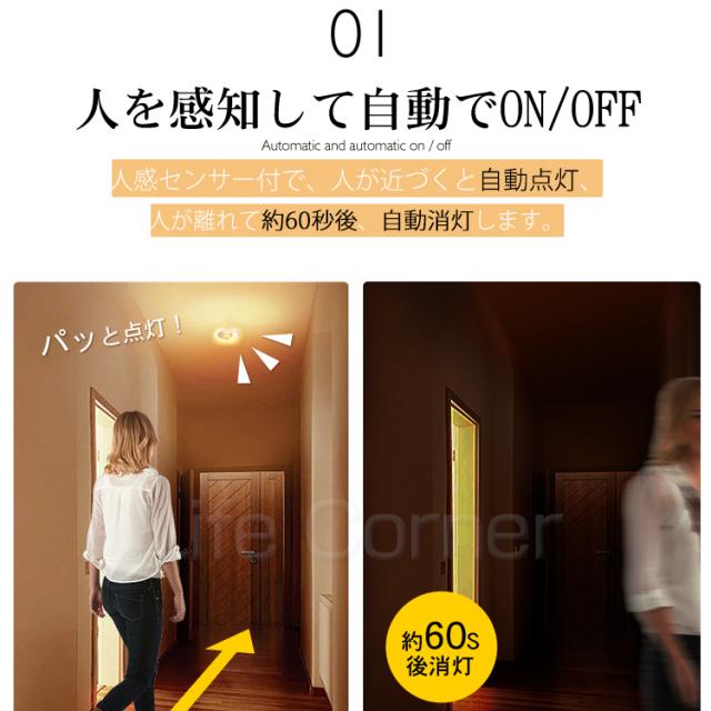 6.人を感知して自動でON/OFF。離れると約60秒後に消灯。消し忘れの心配なし!