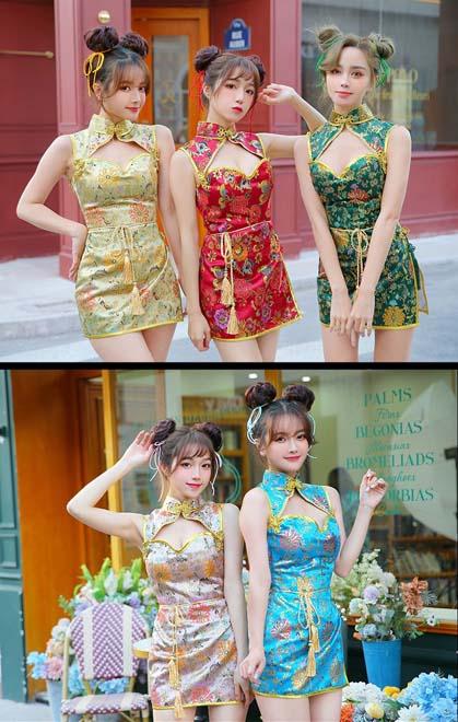 ミニスカ丈の本格チャイナで、従来のチャイナとは別格の魅力を演出。