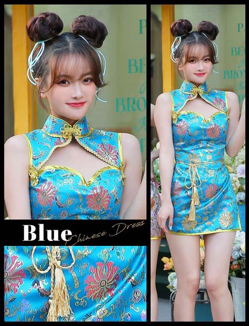 チャイナドレス・ゴールドのショートパンツ・腰ひも・髪飾りひも×2