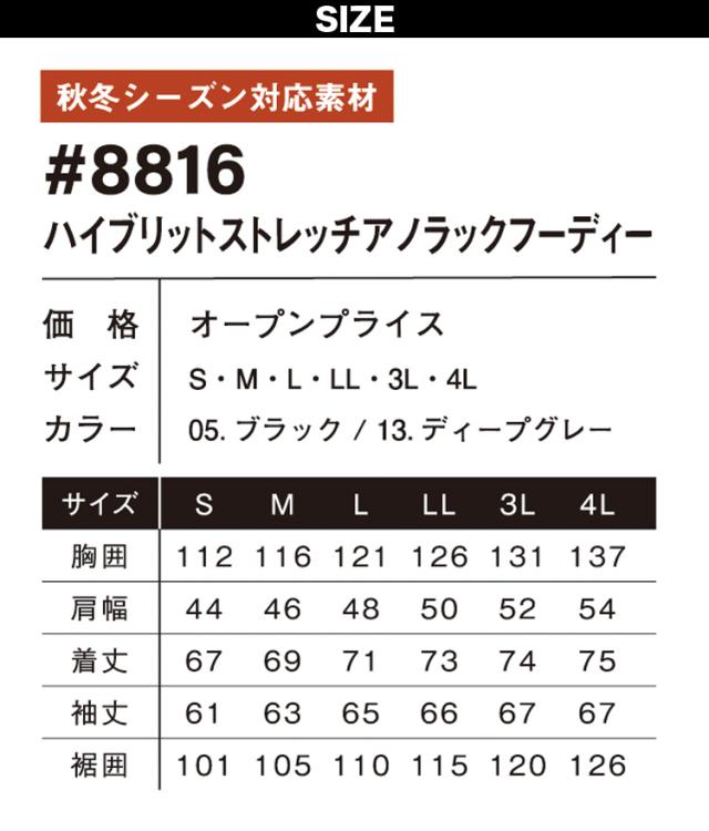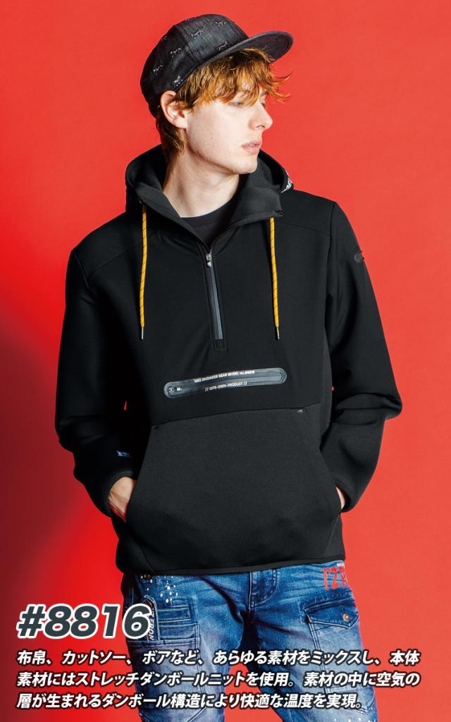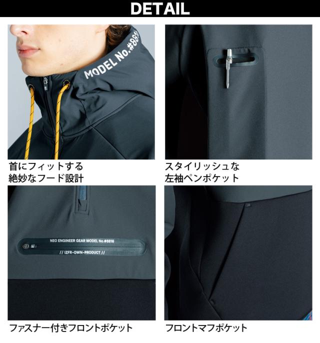 アイズフロンティア ハイブリットストレッチアノラックフーディー 8816 軽防寒 ストリートカジュアル 秋冬 作業服 作業着 かっこいい おしゃれ I’Z FRONTIER