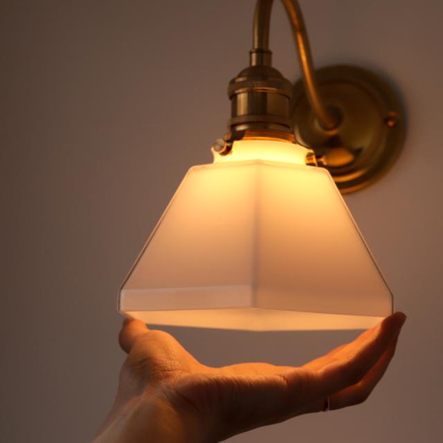 『レトロエントランスライト ブラス』+『ガラスシェードポリゴン』の灯具・シェードセット。