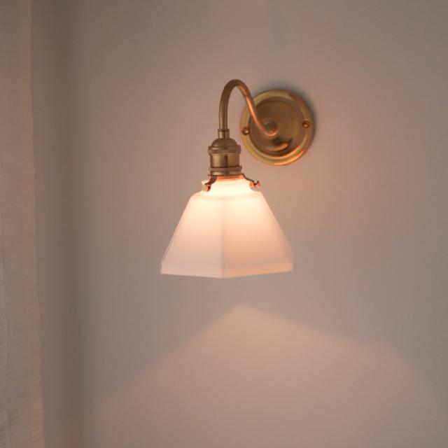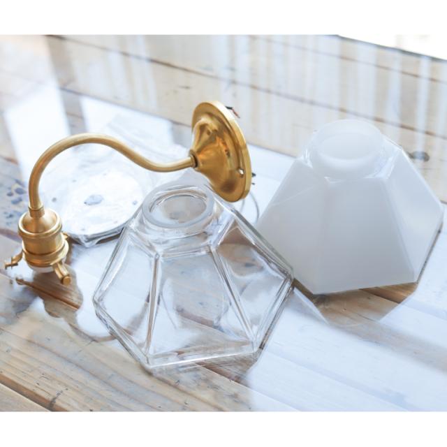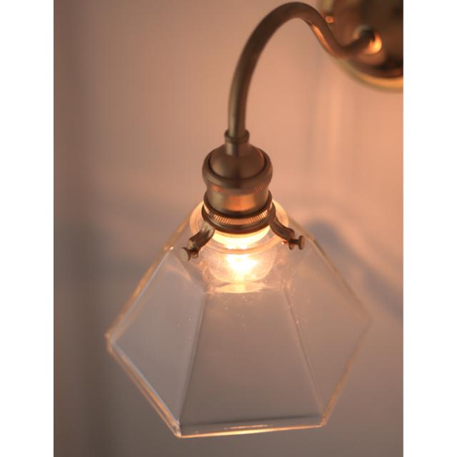 E17 レトロエントランスライトブラス+ガラスシェード ポリゴン セット 灯具 シェードセット ブラケットライト ウォールライト レトロ 真鍮照明 防雨 防水 屋内 屋外 玄関照明 玄関灯 間接照明 ポーチライト 壁掛け照明 直付け ライト ランプ [TYPE A] agesugi_sis
