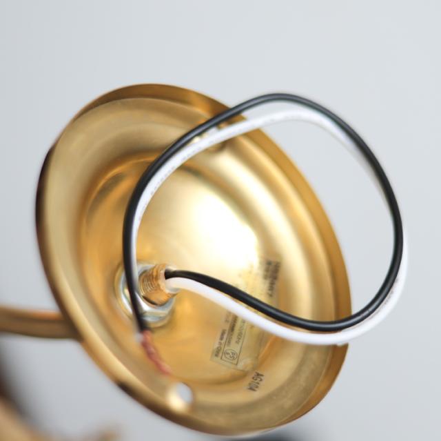 深みがあるゴールドの真鍮照明と六角形のクラシカルなシェードが相まって、レトロ・アンティーク感漂うノスタルジックな雰囲気に。