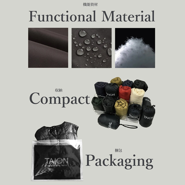 インナーダウンウェアブランドの TAION(タイオン) ブランド名の由来は、体温=TAION。