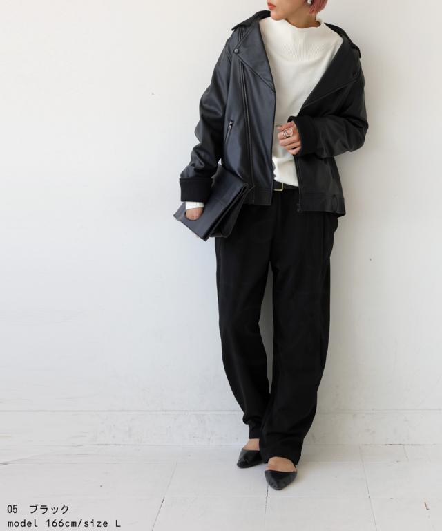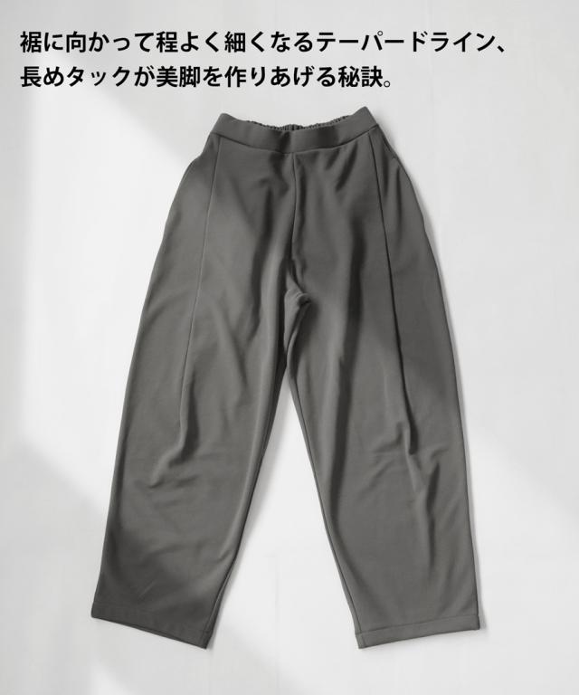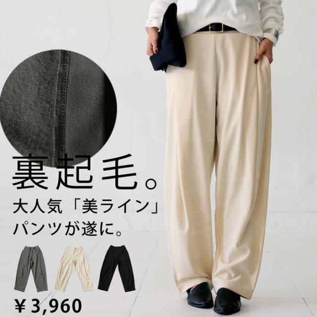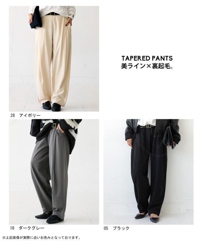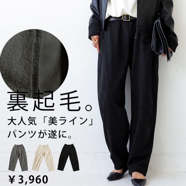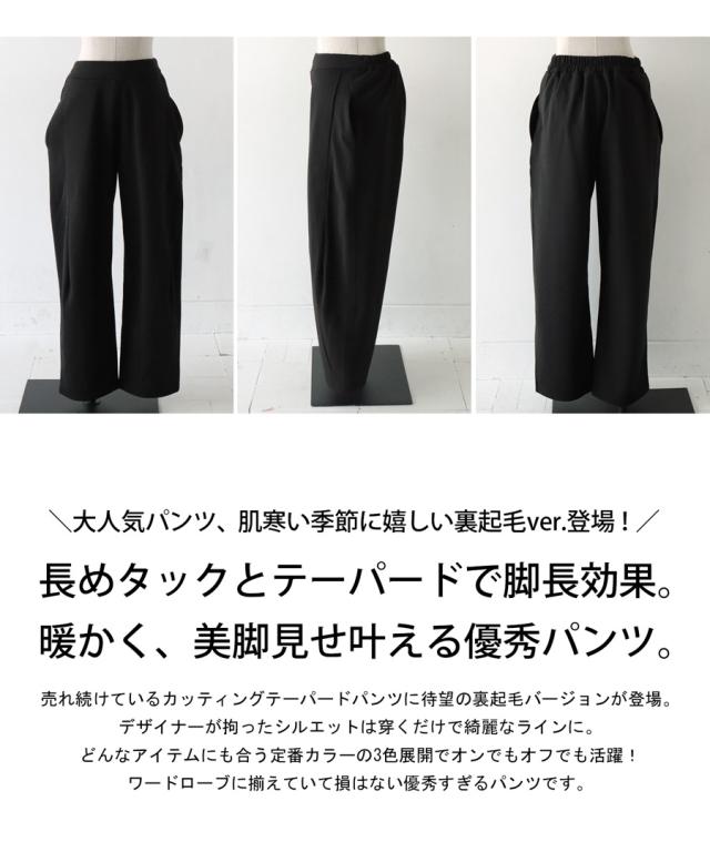 ay-00049 裏起毛 テーパード テーパードパンツ ゆったり きれいめ 上品 イージーパンツ 美脚 脚長効果 細見え 長ズボン 前フラット 後ろゴム リラックス ラフ 楽ちん オフィス