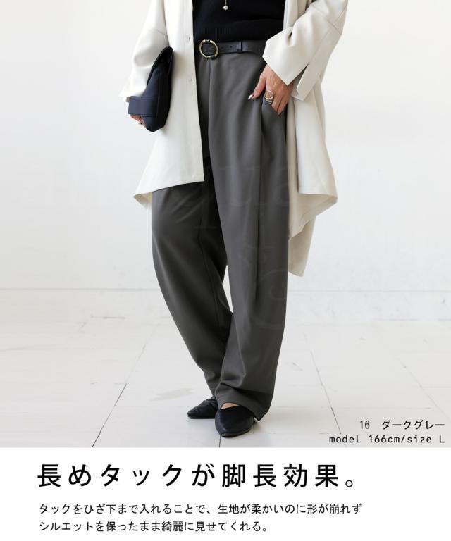 ・タックをひざ下まで入れることでを形を保ったまま綺麗魅せ叶えるシルエットに。