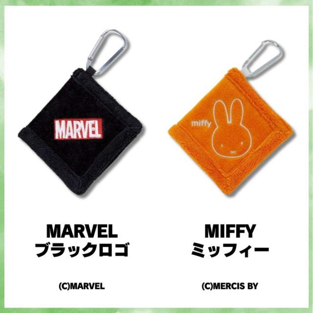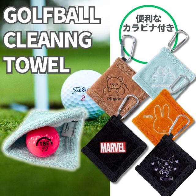 リラックマ、ドラえもん、ミッフィー、クロミ、マーベルなど、ゴルフ好きに人気のキャラクターを刺繍であしらったかわいいゴルフ用ボールクリーナータオル。