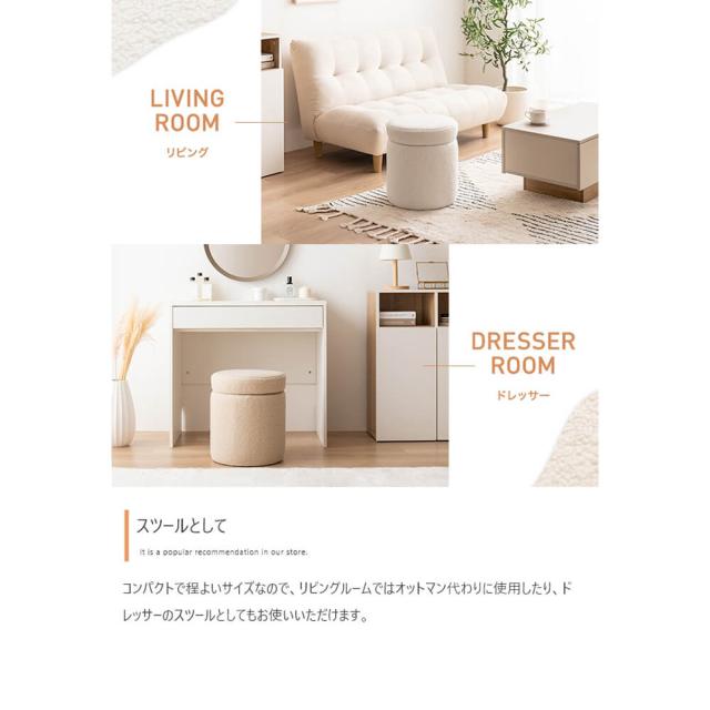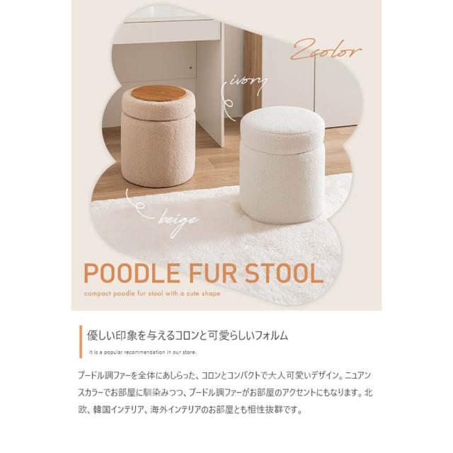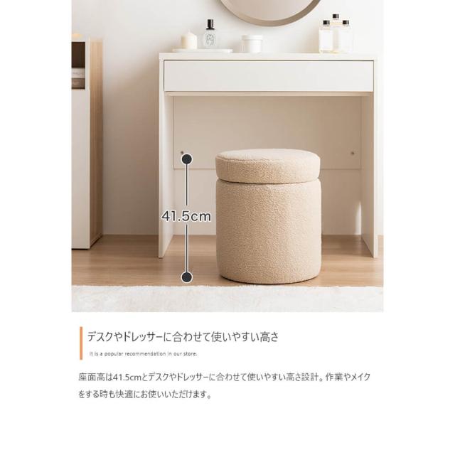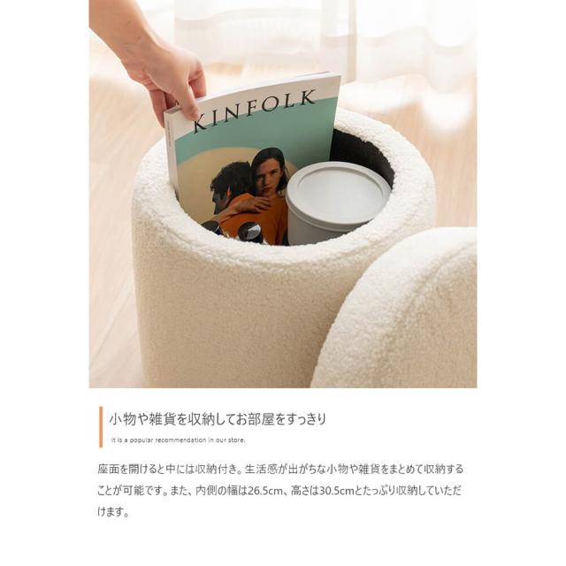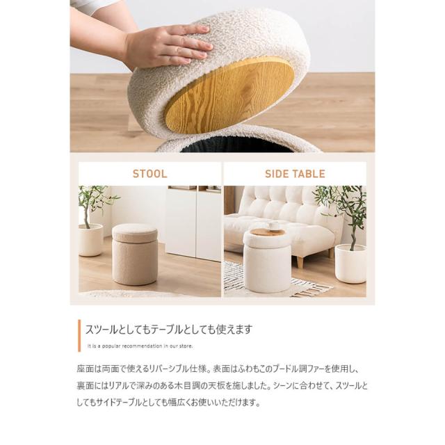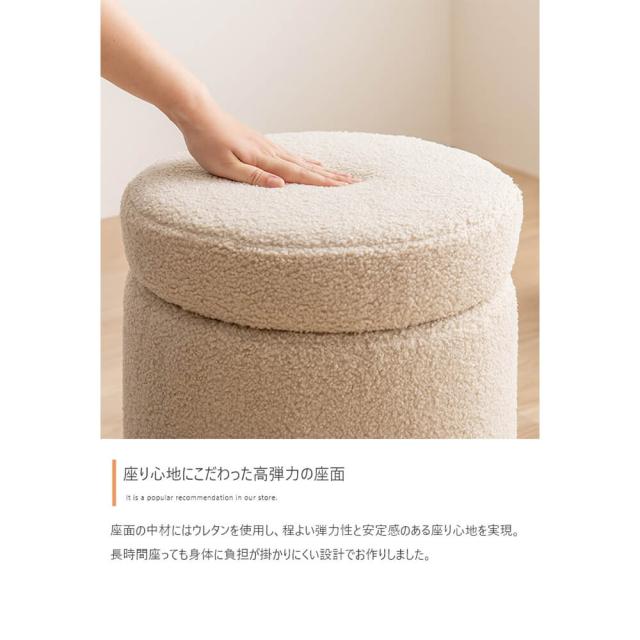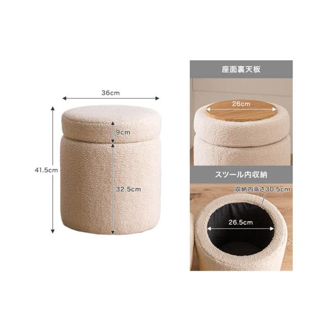収納付きふわもこスツール 幅36cmタイプ スツール 椅子 チェア オットマン サイドテーブル 収納 丸 イス ドレッサー