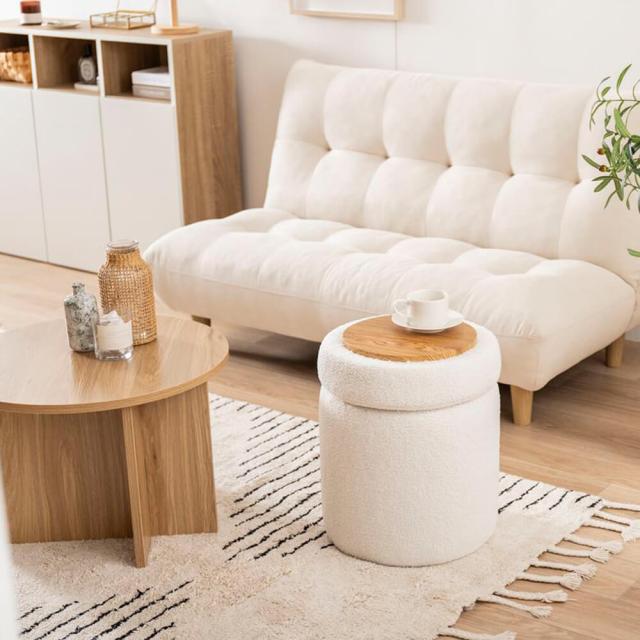 可愛らしいふわもこデザインの4WAYスツールで、収納・サイドテーブル・オットマンの多彩な使い道♪