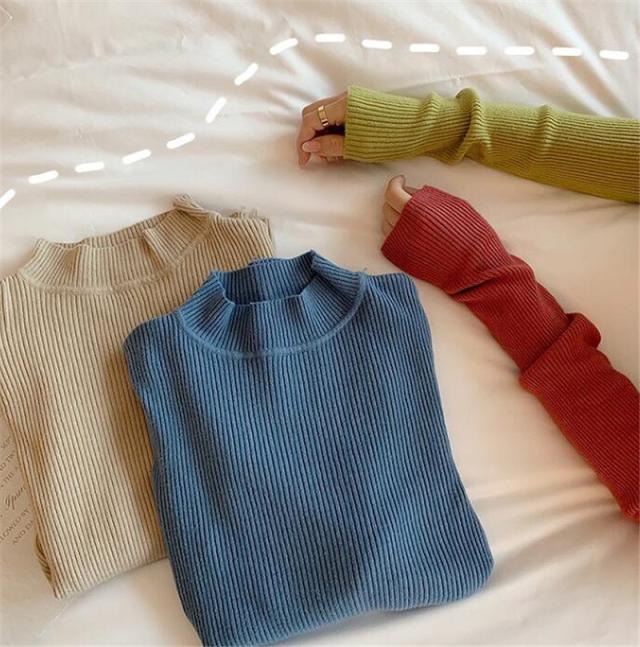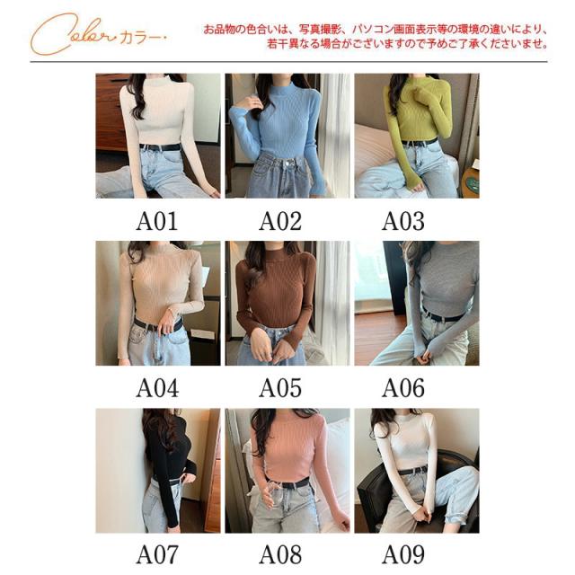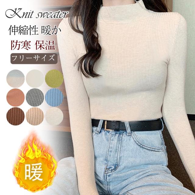 ニット レディース セーター リブニット プチハイネック プルオーバー 長袖 トップス インナー 無地 着痩せ 秋冬 おしゃれ 通