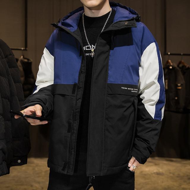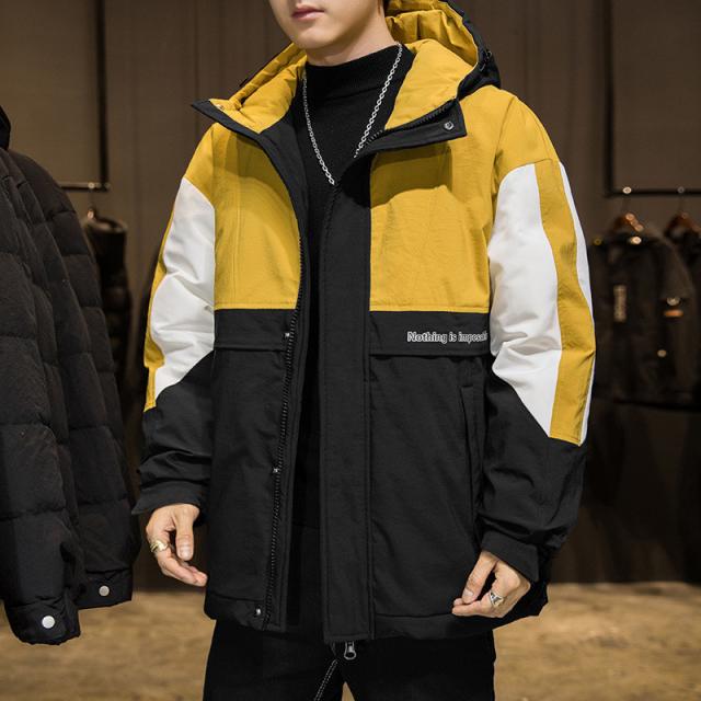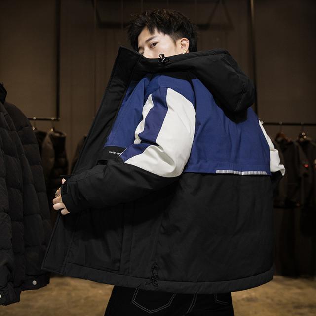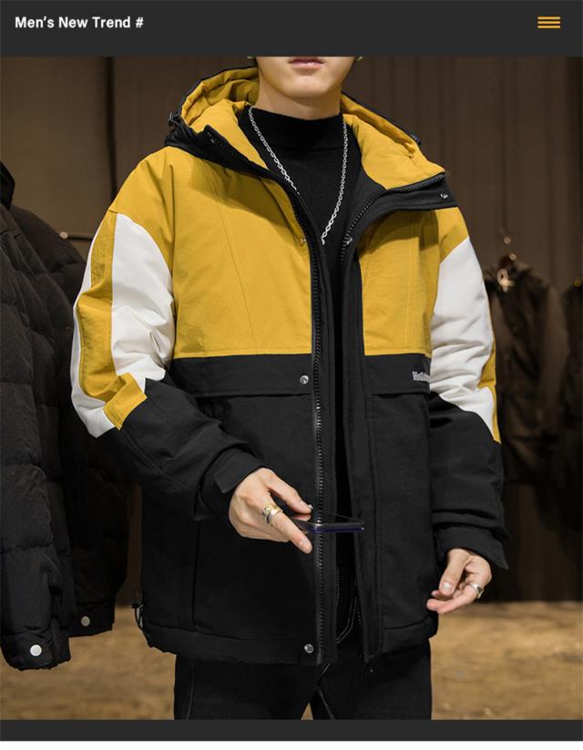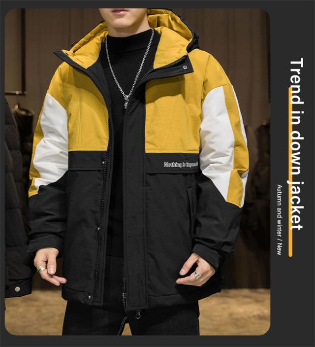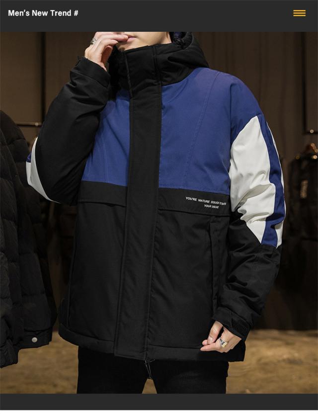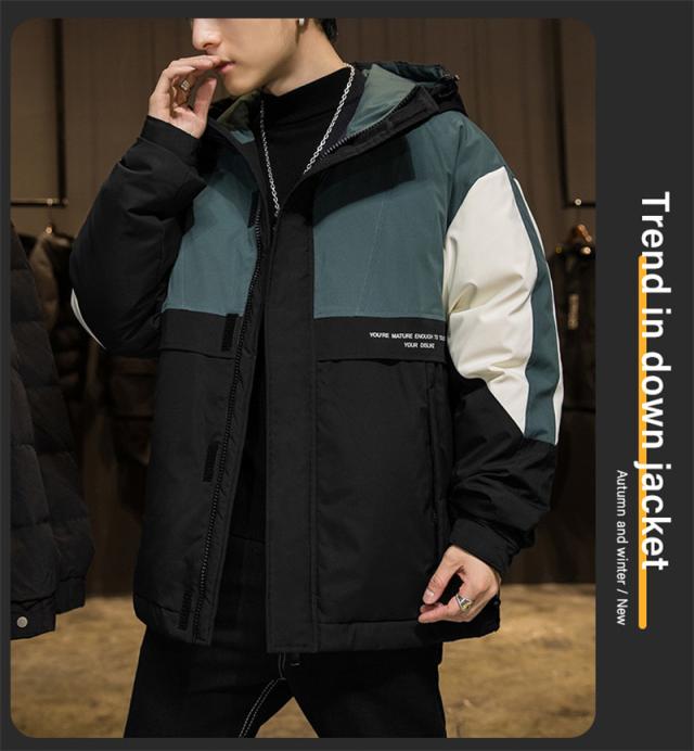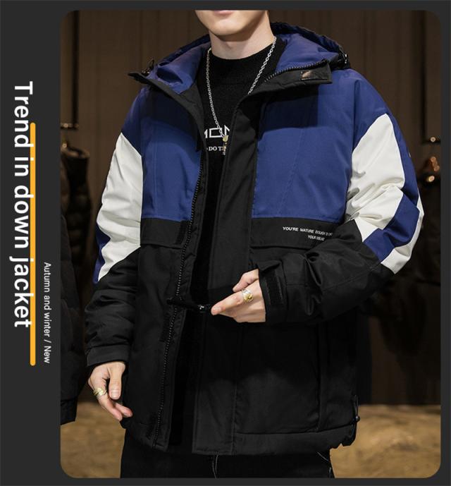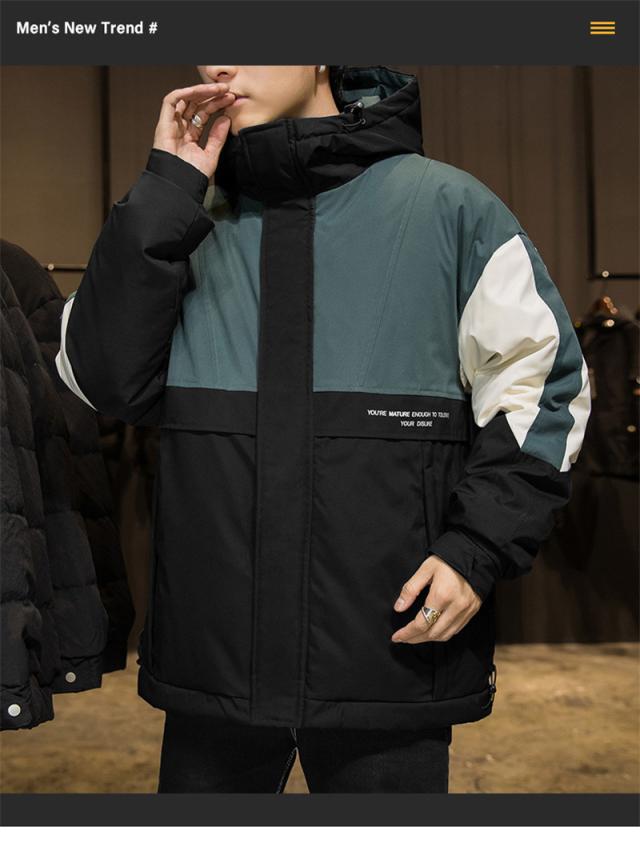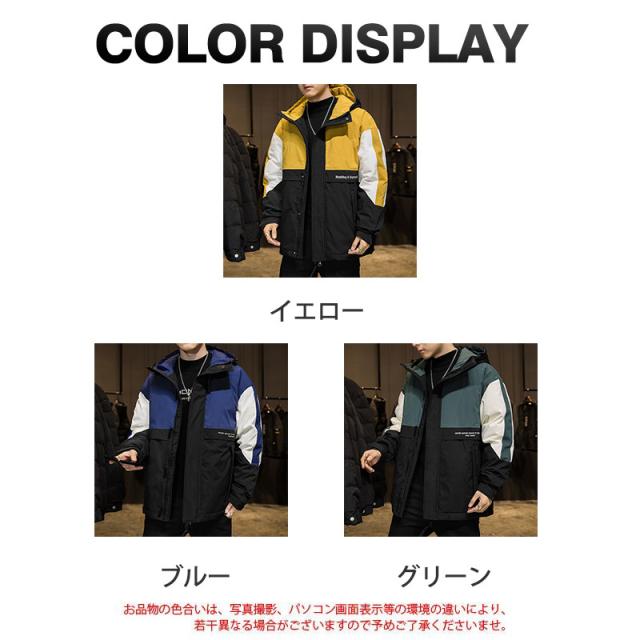 ダウンジャケット メンズ ダウンコート フード付き バイカラー シンプル ジャケット カジュアル アウトドア 防寒 キャンプ ハイ