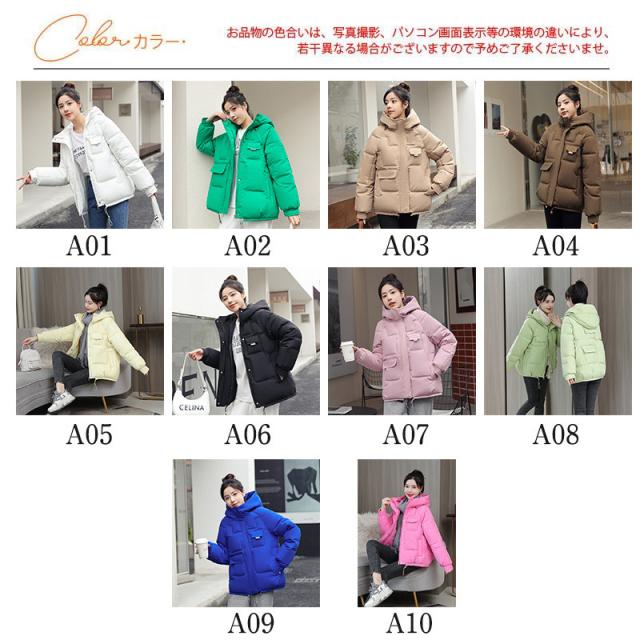 中綿ジャケット レディース フード付き ダウンジャケット ショート丈 カラフル シンプル カジュアル アウトドア コーデ きれいめ