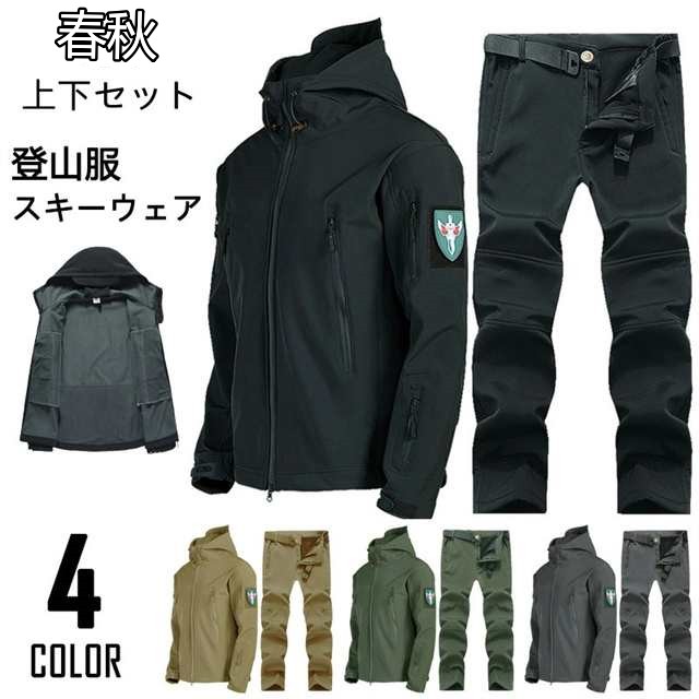 マウンテンジャケット メンズ レディース 春秋 登山服 スキーウェア 2点セット マウンテンパーカー 上下セット アウトドアウェア ズボン 防水 ハイキングジャケット