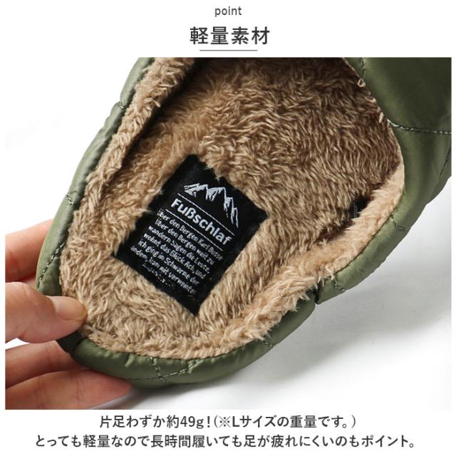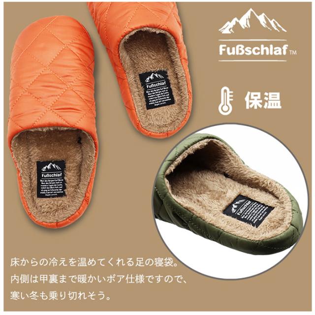 | 商品説明 | ・まるで寝袋に足を入れたようなあたたかさ!「FuBschlaf(フースシュラフ)」のチャールストンファースリッパが発売。 【FuBschlaf(フースシュラフ)】 ・クッション性・保温性・軽量といった特性をいかし、まるで寝袋に足を入れたみたいにあたたかく、ふっくらとした履き心地を感じさせてくれるスリッパ。 【静音設計】 ・底面はスウェード調生地を使用しているので、パタパタ音が気にならない静音設計。 【保温性◎】 ・表面はキルティング生地、内側は暖かさが魅力なオールボア仕様で床からの冷えをシャットアウトし保温性◎ 【軽量素材】 ・片足わずか約49g!(※Lサイズの重量です。)とっても軽量なので長時間履いても足が疲れにくいのもポイント。 【収納袋付き】 ・持ち運びに便利なスリッパと同カラーの収納袋付き。 【様々なシーンで活躍】 ・おうちの中で履くのはもちろん、テントの中で使用したり旅行や移動時など、携帯スリッパとしても使用するのもおすすめ。 |