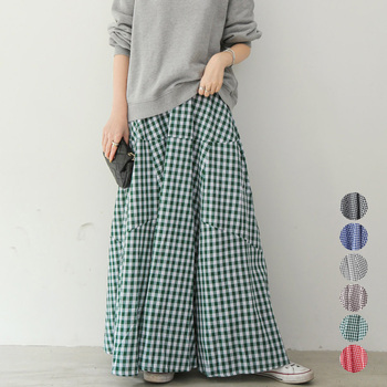 爽やかなギンガムチェックが目を惹くマキシ丈スカート