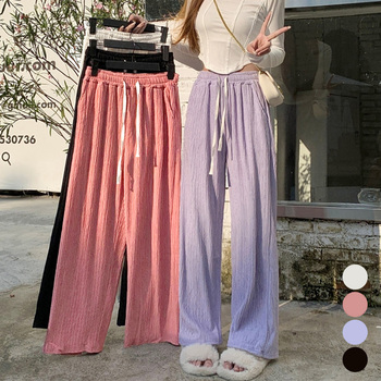 レディース サマーパンツ カジュアル ワイドレッグズボン 通勤通学 低身長向けストレートパンツ ウエストゴムボトムス春夏脚長 楽ちんパンツ 着やせパンツ ゆったり 長ズボン