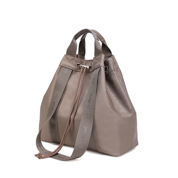ナイロン ロゴテープ 牛革ハンドル 2WAY 巾着トートバッグ